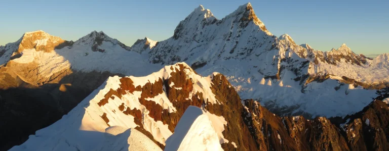 La Cordillera Blanca ofrece rutas de escalada para todos los niveles, desde expediciones a Nevados técnicos como el Huascarán y el Alpamayo, hasta ascensiones poco difíciles, como en el Valle de Ishinca, ideal para principiantes. La ciudad de Huaraz es el punto de partida principal desde donde organizamos expediciones, que incluyen guías de montaña, porteadores y toda la logística necesaria para una experiencia segura y exitosa.